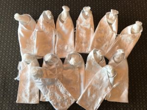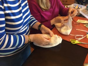 After reading about the various programs that use donated wedding dresses to create burial gowns, bonnets and wraps for infants who are stillborn, or preemies that pass after birth, members of the GFWC Woman’s Club of New Tampa decided to do their part in helping grieving parents and created 14 micro-preemie “angel wraps” with bonnets and three burial gowns to be delivered to the Bereavement Team at Florida Hospital Tampa later this month. A white satin wedding dress was donated by a club member and the over 10 yards of fabric, embellishments and lace was used to create these one-of-a-kind items for parents of children who will not reach their first birthday. Each wrap and gown are unique; the Bereavement Team plans on distributing them to families for final pictures and as a remembrance of the child lost too early.