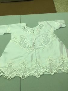 Thank you to our member who donated the wedding dress and the many hands that had part in the making of these garments.